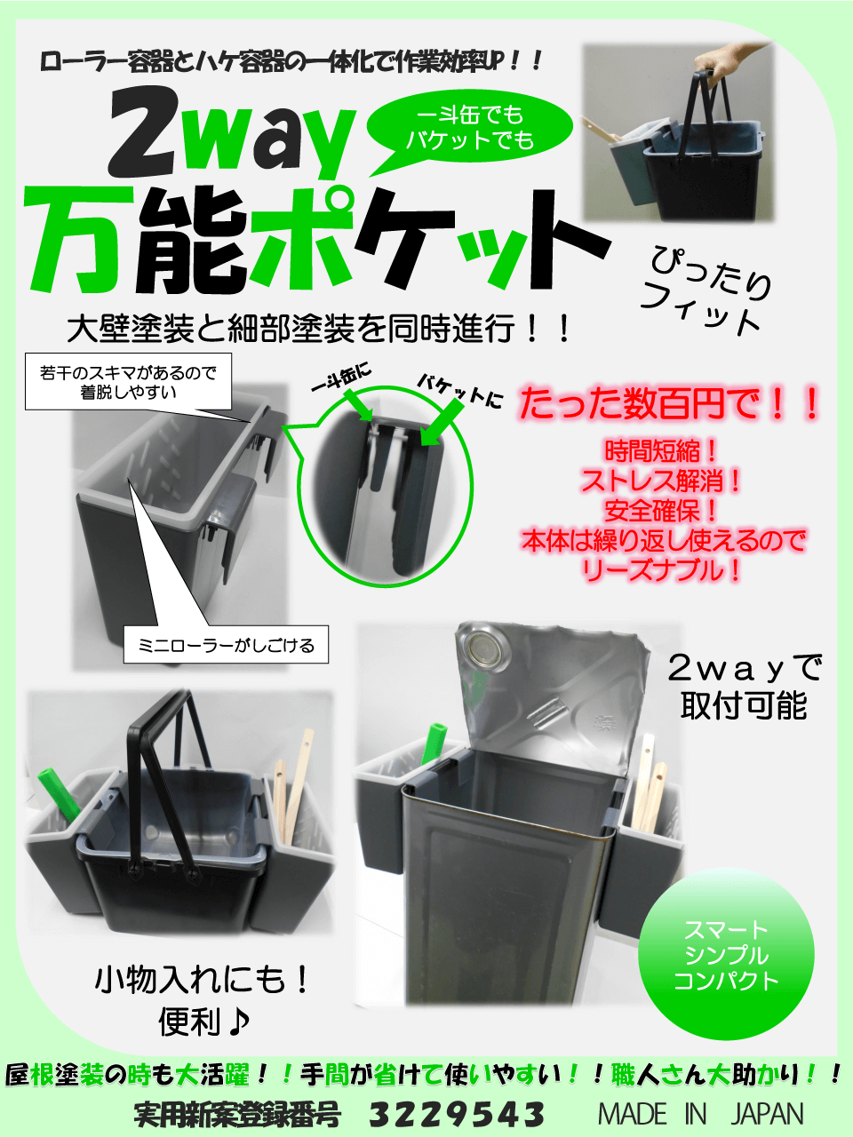 2WAY万能ポケットは、株式会社ファーストペイントが開発した商品です。